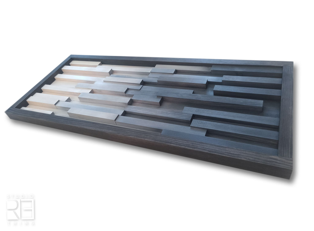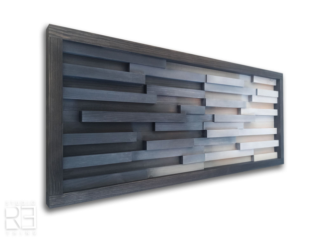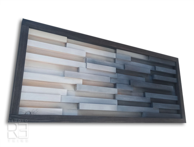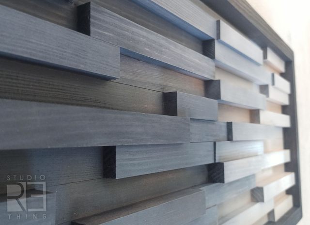 Nowoczesna forma, naturalny materiał, zaskakujący efekt przestrzenny. Ten ręcznie wykonany obraz powstał z sosnowych listewek o różnych grubościach i odcieniach, tworząc geometryczną, rytmiczną kompozycję. Każdy element został starannie dobrany i ułożony tak, by budować głębię i przyciągać wzrok subtelną grą światła i cienia.