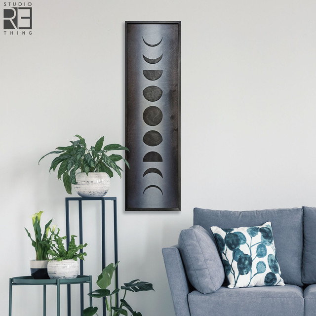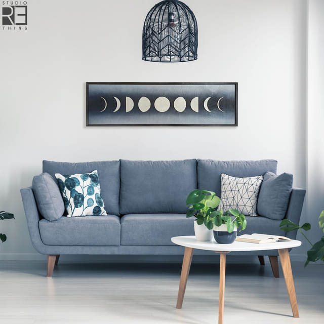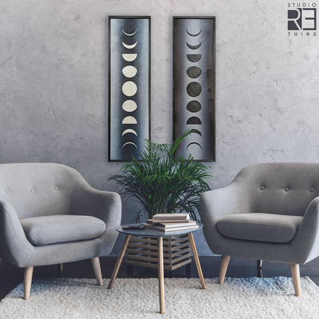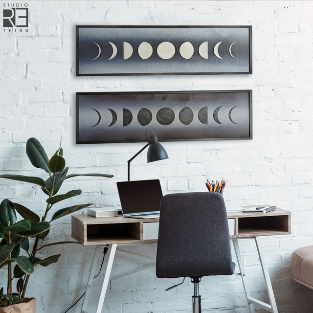 Minimalistyczna dekoracja ścienna inspirowana rytmem księżyca i harmonią kontrastów.