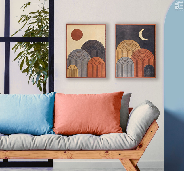 Minimalistyczna kompozycja łącząca geometrię i delikatne tonacje pastelowych barw. Ten drewniany obraz ścienny to perfekcyjne połączenie precyzyjnej formy z wyciszającą, spokojną estetyką. „Linie i barwy” to wyjątkowa dekoracja, która doskonale wpasuje się zarówno we współczesne, jak i rustykalne czy boho wnętrza.
