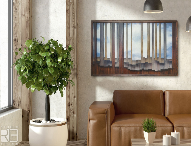 Przenieś się na łono natury dzięki unikatowej dekoracji „Na skraju lasu” z Pracowni ReThing. Ten ręcznie wykonany, przestrzenny obraz z drewna to wizualna podróż w głąb leśnej scenerii, gdzie słoje i naturalna struktura drewna tworzą hipnotyzujący efekt. Nakładające się na siebie plany oraz subtelne różnice odcieni nadają kompozycji głębi i autentyczności.
