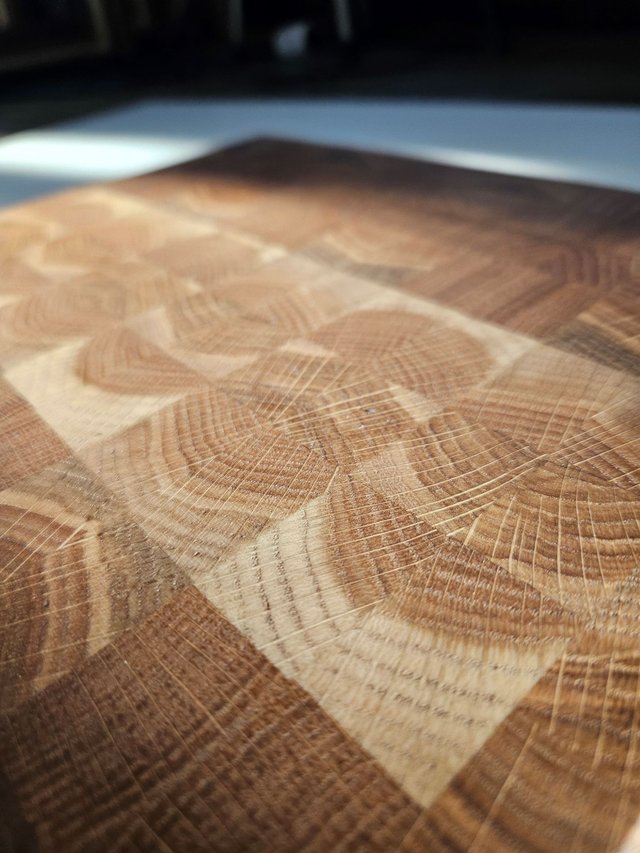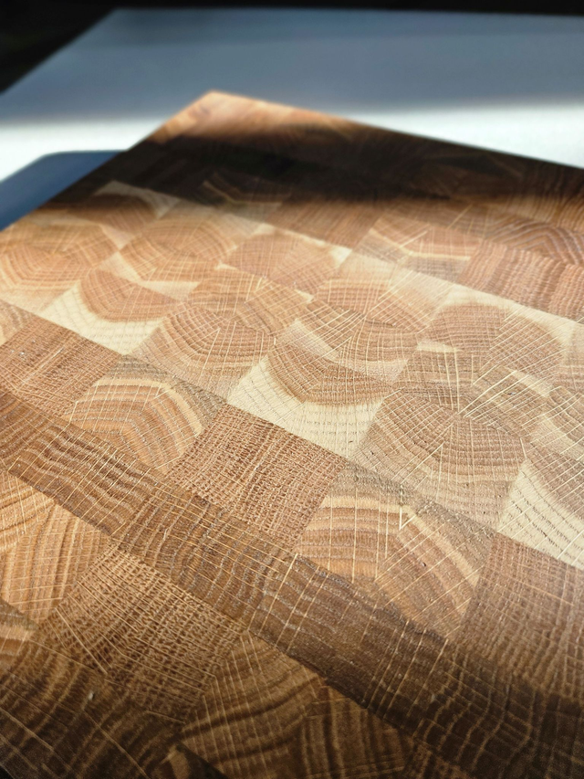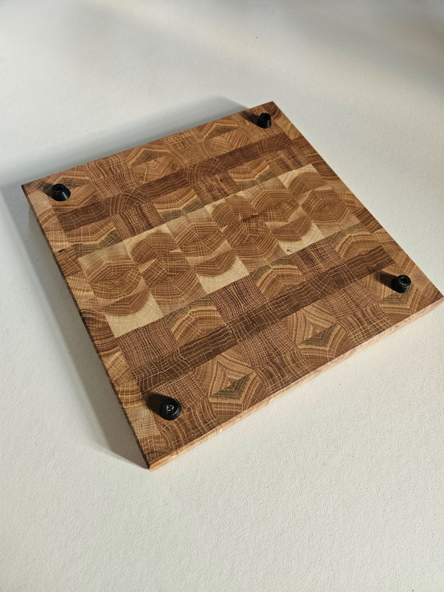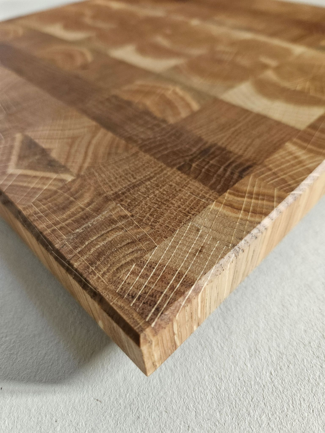 – Sztorcowy układ włókien (end grain) – delikatny dla noży, odporny na przecięcia