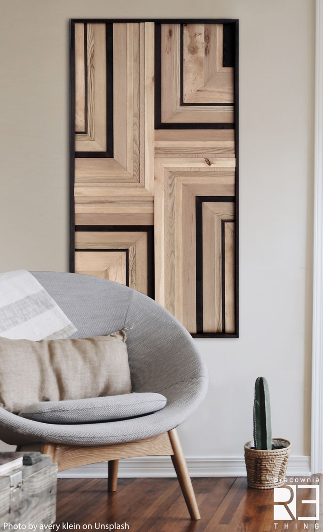 Ręcznie wykonana mozaika ścienna z naturalnego drewna, łącząca nowoczesną formę z ciepłem szlachetnych materiałów. Zróżnicowana faktura i bogata paleta naturalnych odcieni – od jasnego dębu po ciemne brązy – nadają kompozycji głębię i wyrazisty rytm. To unikatowa alternatywa dla typowych obrazów i plakatów, która odmieni charakter każdej ściany.