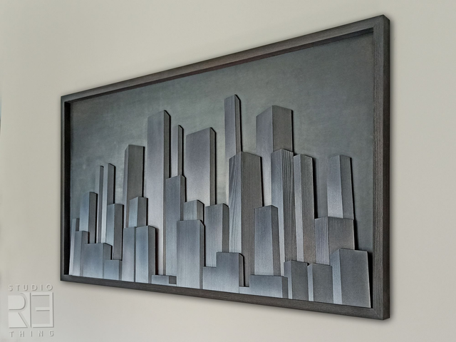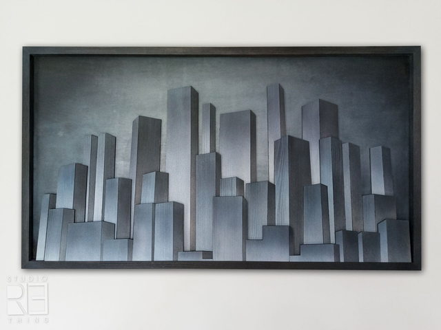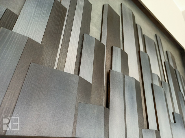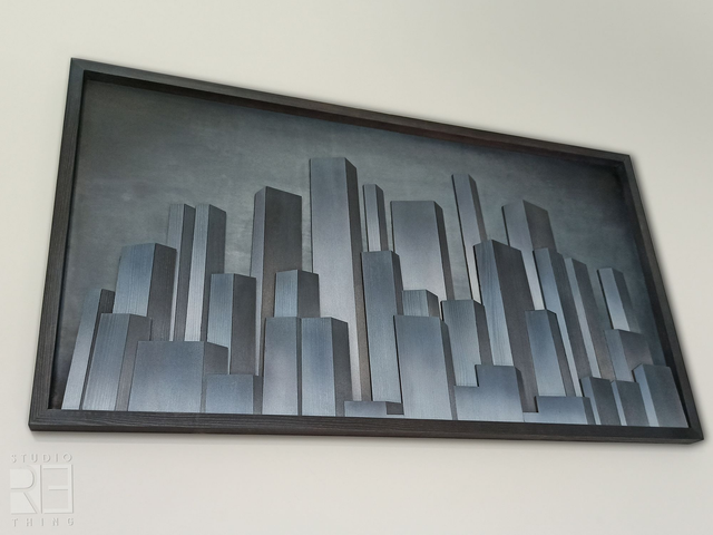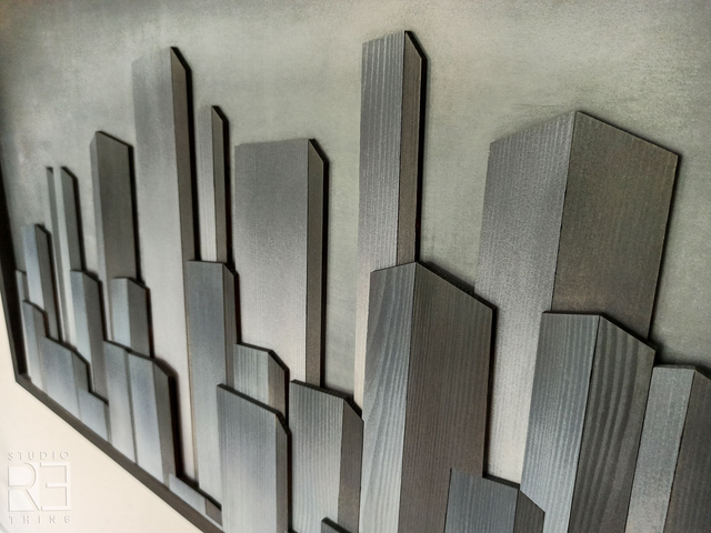Abstrakcyjna interpretacja miejskiego pejzażu, gdzie geometryczne formy spotykają się z subtelnym rytmem drewna. Inspirowana estetyką Bauhausu i art déco, ten drewniany obraz łączy w sobie nowoczesność z klasyczną elegancją. Każdy element, starannie wycięty i ułożony, tworzy harmonijną kompozycję, która ożywi każde wnętrze.