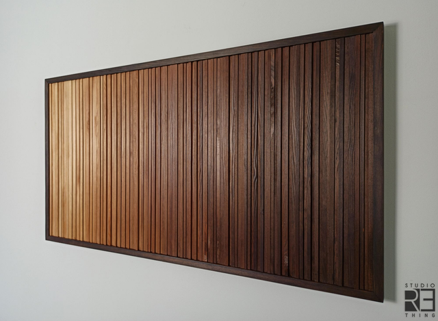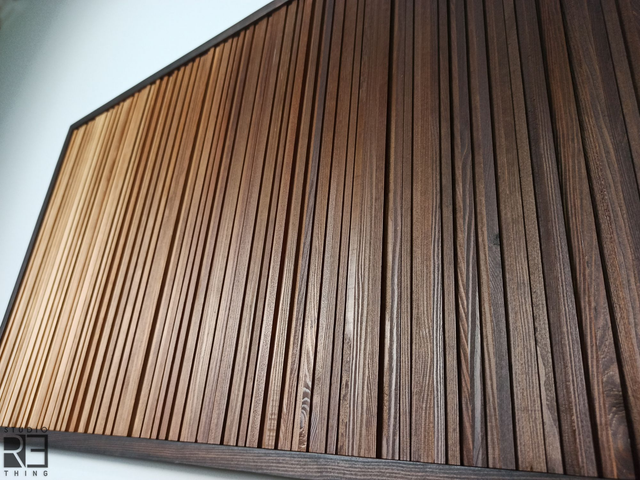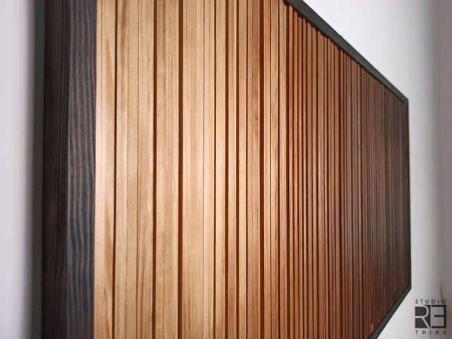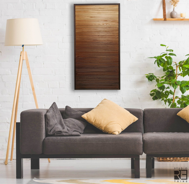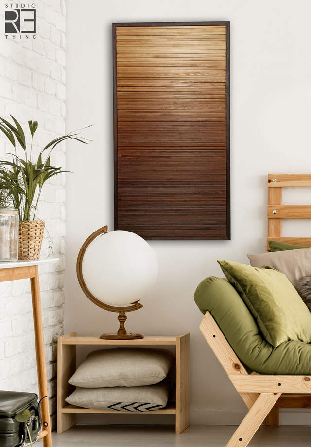 To dekoracja, która łączy rustykalny charakter z nowoczesną geometrią i sprawdzi się zarówno w salonie, jak i w biurze czy przedpokoju. Można ją zawiesić w pionie lub w poziomie – zależnie od układu przestrzeni.