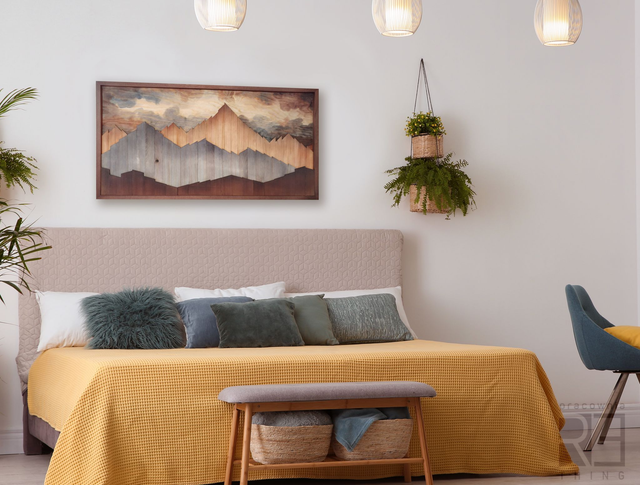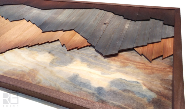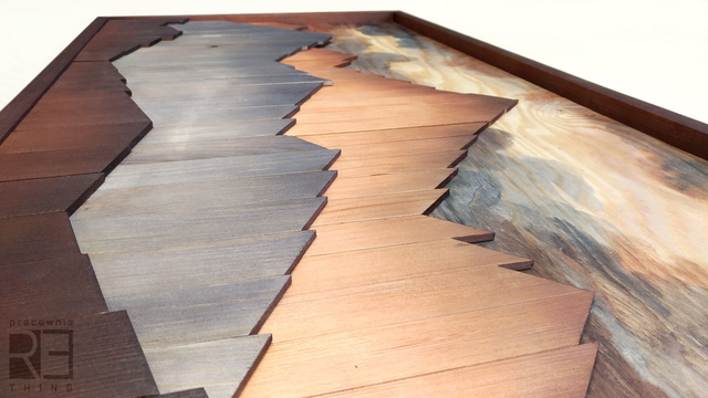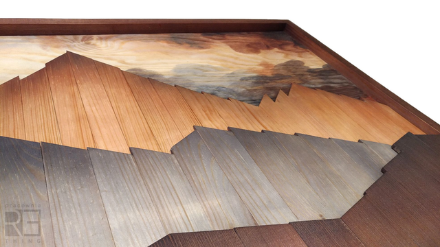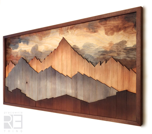 Ręcznie wykonany obraz z drewna, inspirowany widokiem, który zapada w pamięć – gdy po całym dniu wędrówki nastaje moment ciszy, oddechu i podziwu wobec potęgi natury. Warstwowa kompozycja prowadzi wzrok przez trzy granie aż po pełne różnorodnych barw niebo – obraz, który wprowadza do wnętrza nostalgię górskich widoków.